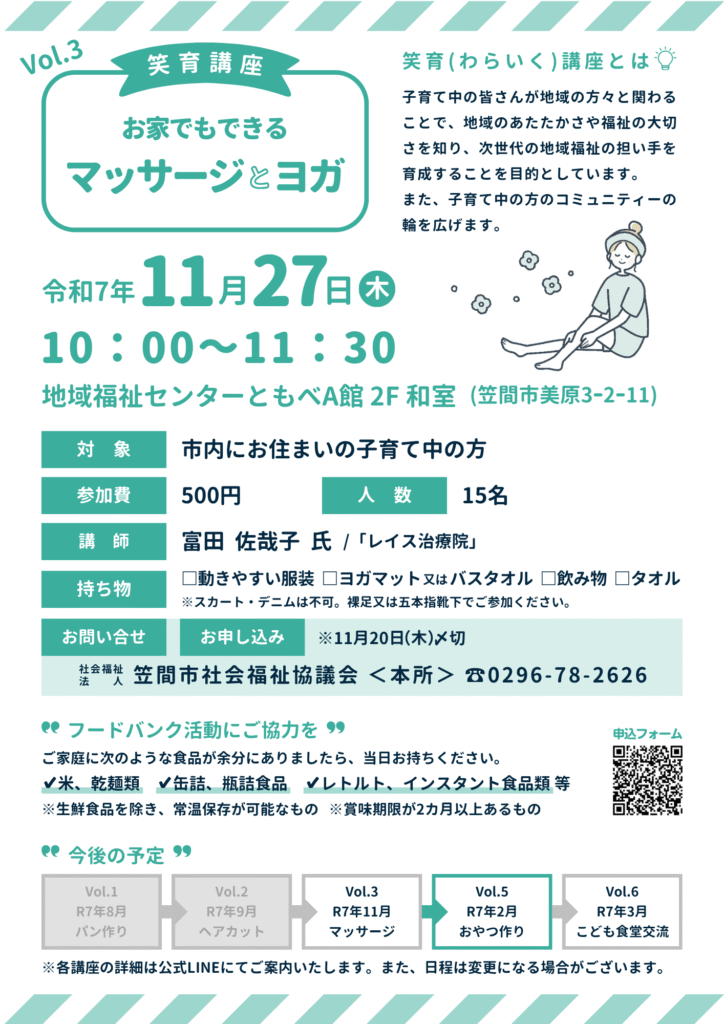 笑育講座(お家でもできるマッサージとヨガ)
